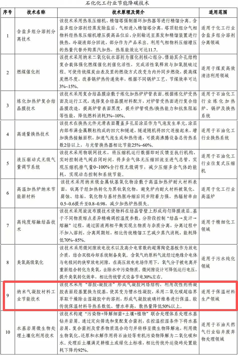 氣凝膠節(jié)能技術(shù)列入《工業(yè)和信息化節(jié)能降碳技術(shù)裝備推薦目錄(2025年版)》